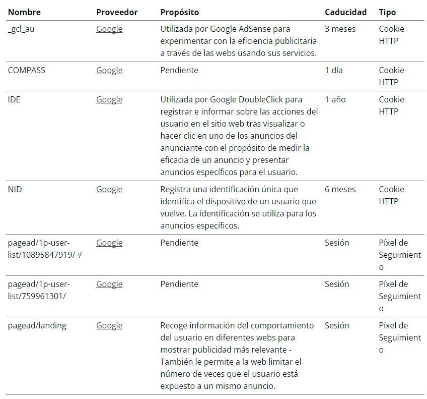 Cookies de publicidad comportamental: son aquellas que almacenan información del comportamiento de los usuarios obtenida a través de la observación continuada de sus hábitos de navegación, lo que permite desarrollar un perfil específico para mostrar publicidad en función de este.
